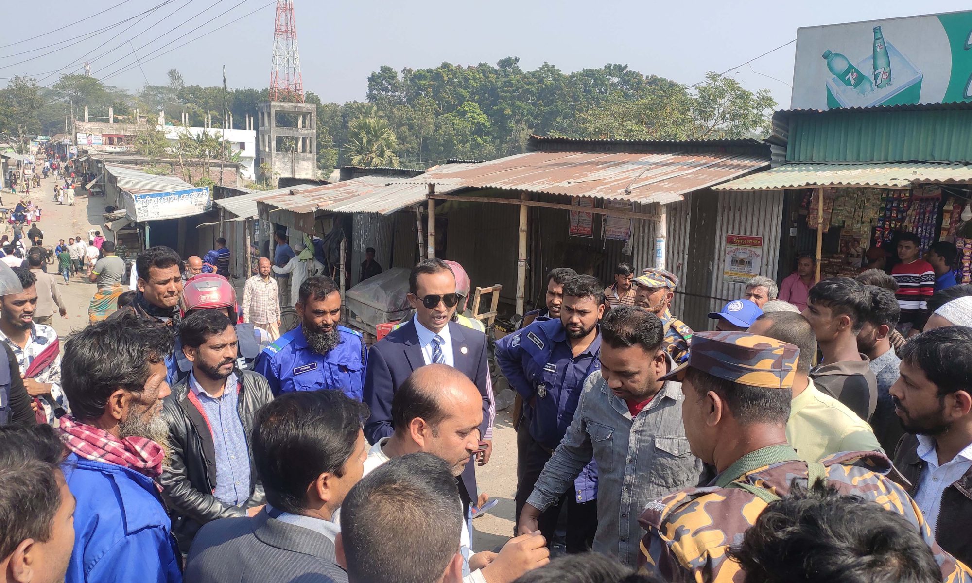 বিষয়টি উপজেলা আওয়ামীলীগের ভারপ্রাপ্ত সভাপতি সাইফুর রহমান মিরন ও ভারপ্রাপ্ত সাধারণ সম্পাদক আকরামুজ্জামান রাজা মীমাংসার চেষ্টা চালায়। এক পর্যায়ে বিষয়টি আশপাশের ৫টি গ্রামে ছড়িয়ে পড়লে উক্ত গ্রামের লোকজন দেশীয় অস্ত্র ঢাল, সরকি, রামদা, ইট-পাটকেল নিয়ে মুনসুরাবাদ বিশ্বরোড ও বাজারের দুই পাশে অবস্থান নেয়। ঘন্টাব্যাপি এক পক্ষ অন্য পক্ষের লোকদের উপরে হামলা চালাতে থাকে।