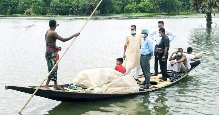 সালথা (ফরিদপুর) প্রতিনিধি: সালথা উপজেলায় মাননীয় প্রাধানমন্ত্রীর পক্ষ থেকে পানিবন্দি ও চলমান বন্যায় ক্ষতিগ্রস্থ্য পরিবারের মাঝে ত্রাণ পৌঁছে দিলেন উপজেলা নির্বাহী অফিসার মোহাম্মাদ হাসিব সরকার। সোমবার সকাল ১১ টায় উপজেলার রামকান্তপুর ইউনিয়নের বন্যা কবলিত বিভিন্ন এলাকায় ১০ কেজি করে চাল ১০০ পরিবারের মাঝে বিতরণ করেন।