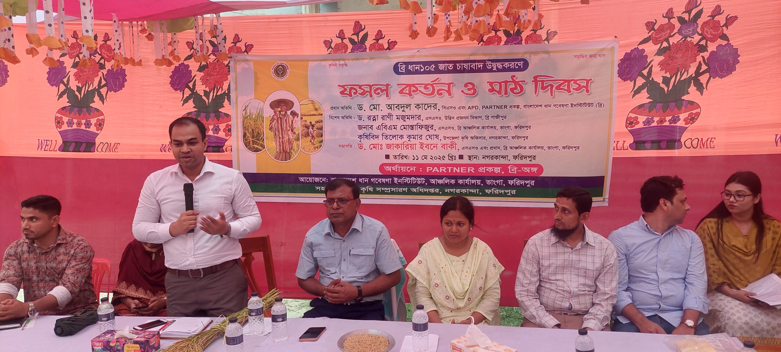 ব্রি আঞ্চলিক কার্যালয় ভাংগা এসএসও ড. মোঃ জাকারিয়া ইবনে বাকিরা সভাপতিত্বে অনুষ্ঠানে প্রধান অতিথি হিসেবে উপস্থিত ছিলেন বাংলাদেশ ধান গবেষণা ইনস্টিটিউট সিএসও এবং এপিডি ড. মোঃ আব্দুল কাদের। এছাড়াও উপস্থিত ছিলেন ব্রি গাজীপুর এসএসও ড. রত্না রানী মজুমদার, ব্রি আঞ্চলিক কার্যালয় এসএসও এবিএম মোস্তাফিজুর ও কৃষিবিদ তিলোক কুমার ঘোষ উপজেলা কৃষি অফিসার নগরকান্দা প্রমুখ।