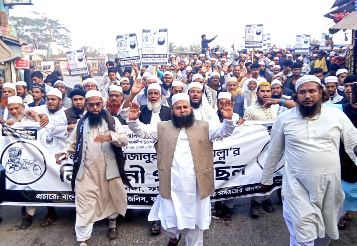 ফরিদপুরে বাংলাদেশ খেলাফত মজলিস প্রার্থীর পক্ষে গণমিছিল, জোট প্রার্থী হিসেবে সমাধানের দাবি