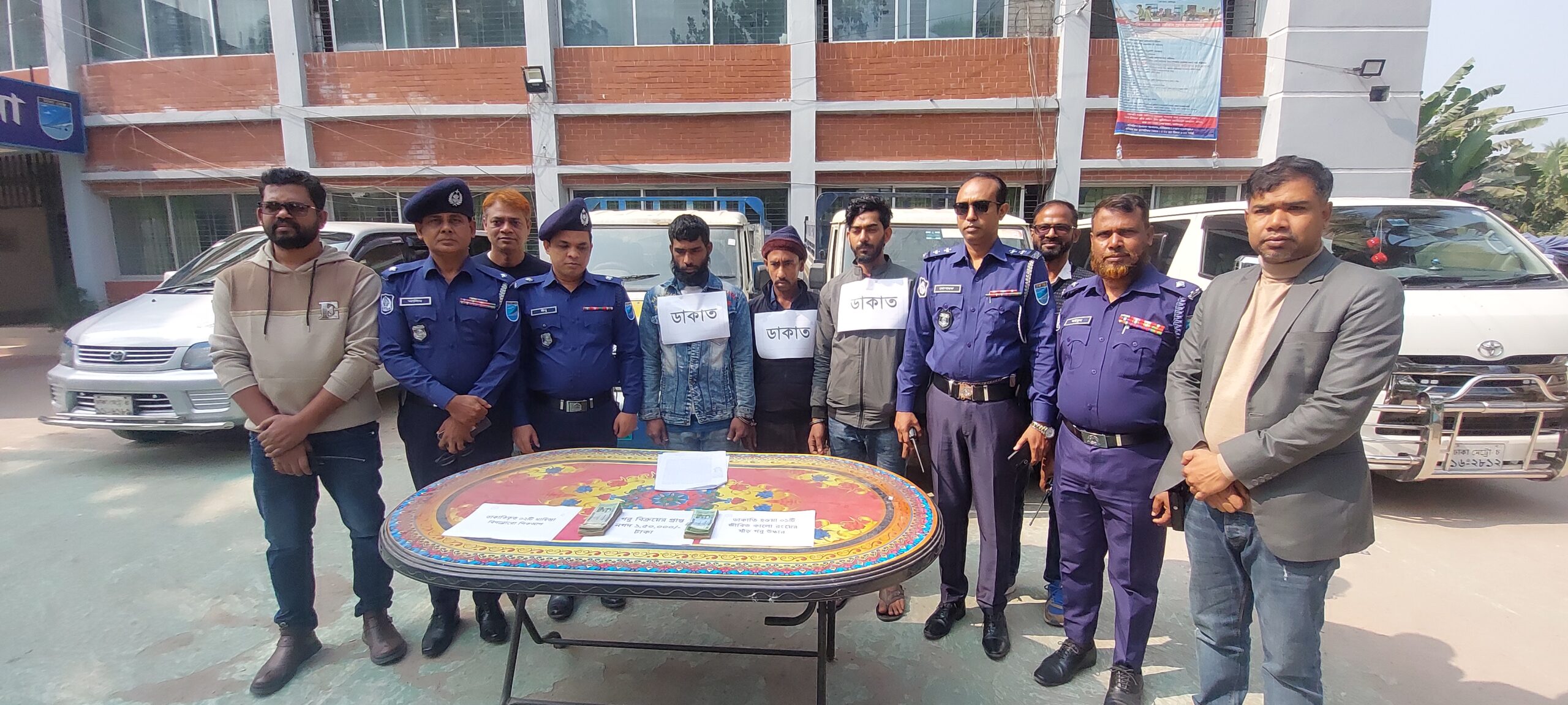 গ্রেফতারকৃত ডাকাত সদস্যরা হলো, ফারুক হোসেন (৩৮), শাহিন মাতুব্বর (২৭), মোবারক হোসেন (৩২)।