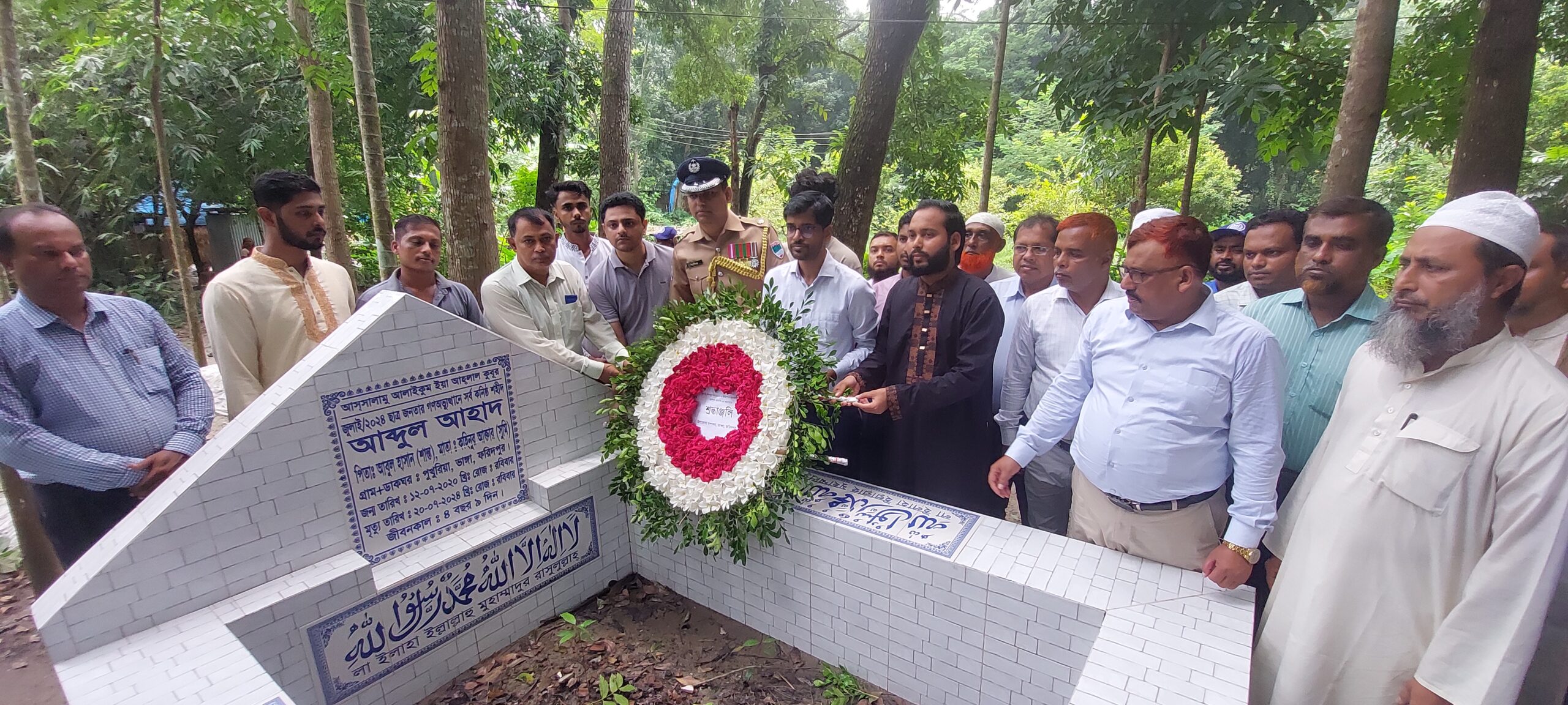 আজ ৫ই আগস্ট গণঅভ্যুত্থানের এক বছর পূর্তি উপলক্ষে সর্বকনিষ্ঠ জুলাই যোদ্ধা আব্দুল আহাদের কবরে শ্রদ্ধাঞ্জলি নিবেদন করেন, ভাঙ্গা উপজেলা নিবার্হী কর্মকর্তা মোঃ মিজানুর রহমান, সহকারী পুলিশ কমিশনার (ভাঙ্গা সার্কেল) মোঃ আসিফ ইকবাল, উপজেলা নির্বাচন অফিসার হাসান উদ্দিন, উপজেলা শিক্ষা অফিসার মোঃ জাহাঙ্গীর আলম,বৈষম্য বিরোধী ছাত্র আন্দোলনের নেতা আশরাফ সহ বিভিন্ন পর্যায়ের নেতৃবৃন্দ।