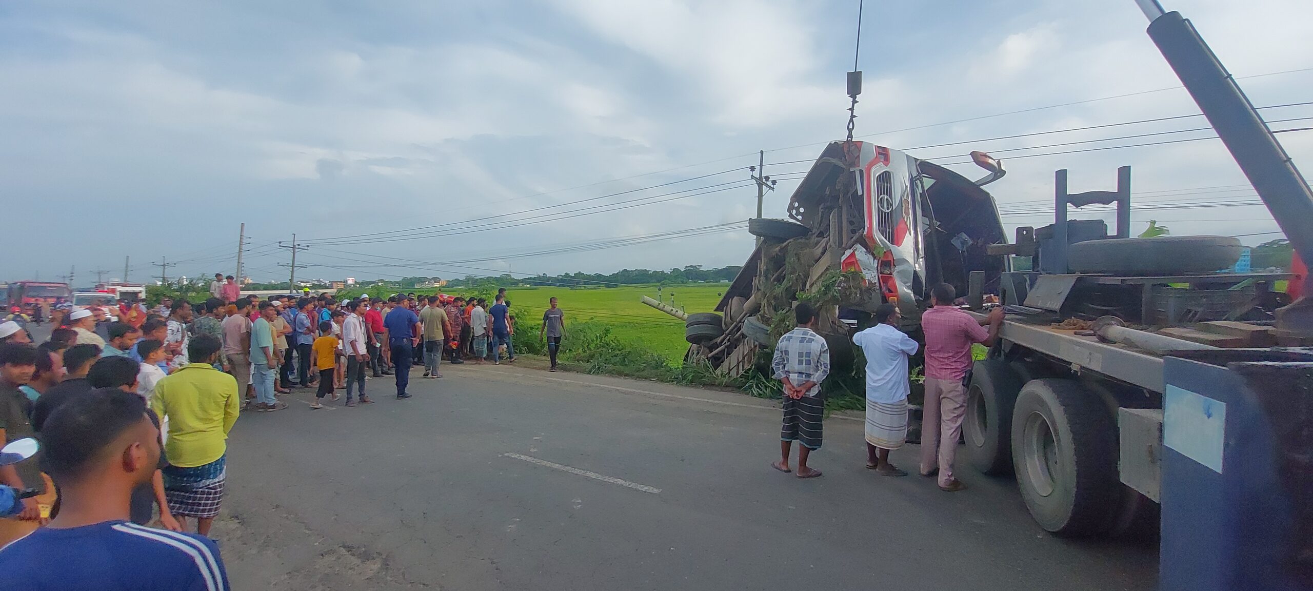 ভাঙ্গা হাইওয়ে থানার ভারপ্রাপ্ত কর্মকর্তা রোকিবুজ্জামান জানান, পুর্বাশা পরিবহন ঢাকা থেকে যাত্রী বোঝাই করে রাজবাড়ী জেলার উদ্দেশ্যে রওনা দিলে ভাঙ্গা ইন্টারচেঞ্জ পাড় হওয়ার পর নিয়ন্ত্রণ হারিয়ে খাদে উল্টে যায়। ভাঙ্গা হাইওয়ে পুলিশ ও ফায়ার সার্ভিসের কর্মীরা ঘন্টাব্যাপী চেষ্টা চালিয়ে আহতদের ও বাসটি উদ্ধার করে।