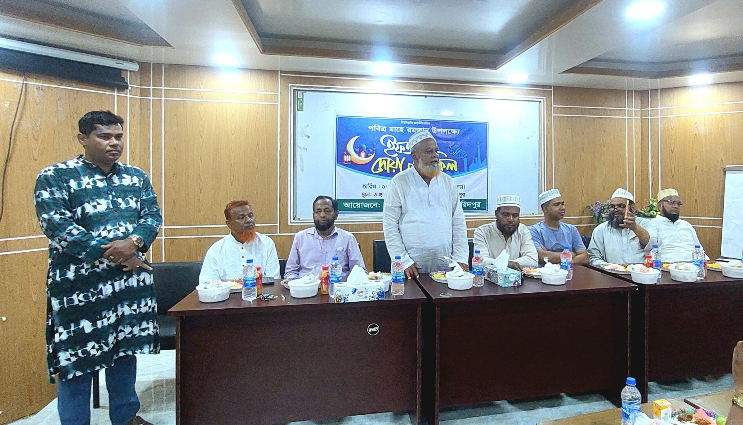 ইফতারের আগ মুহূর্তে মহান আল্লাহর নিকট দেশ ও জাতির শান্তি কামনা করে দোয়া পরিচালনা করেন ভাঙ্গা উপজেলা স্বাস্থ্য কমপ্লেক্সে মসজিদের ইমাম মাওলানা হোসাইন।